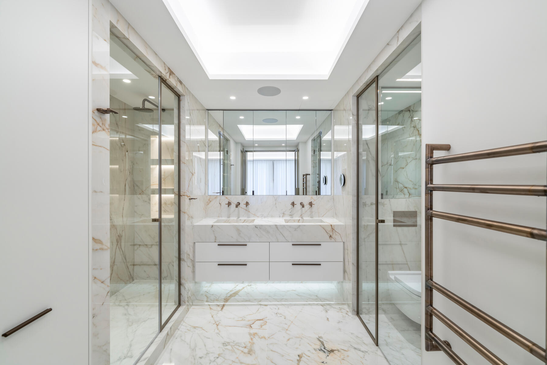 - Hauptschlafzimmer mit begehbarem Kleiderschrank und eigenem Bad